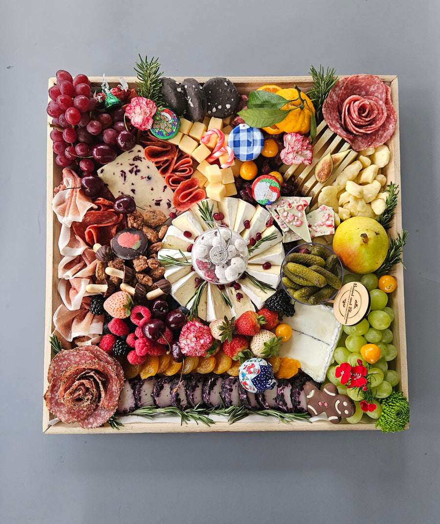 Grazing Boards Collection from Board and Blossom, designed for those who seek exceptional and memorable gifting options. Our grazing boards are a feast for the senses, combining artisan cheeses, premium cured meats, fresh fruits, and elegant accompaniments in a visually stunning presentation. Perfect for adding a touch of luxury to parties, corporate events, or as a unique gift, each board is crafted to impress and indulge. Choose from a range of sizes to suit any occasion and delight in providing your guests or gift recipients with an unforgettable culinary experience that epitomizes sophistication and style.